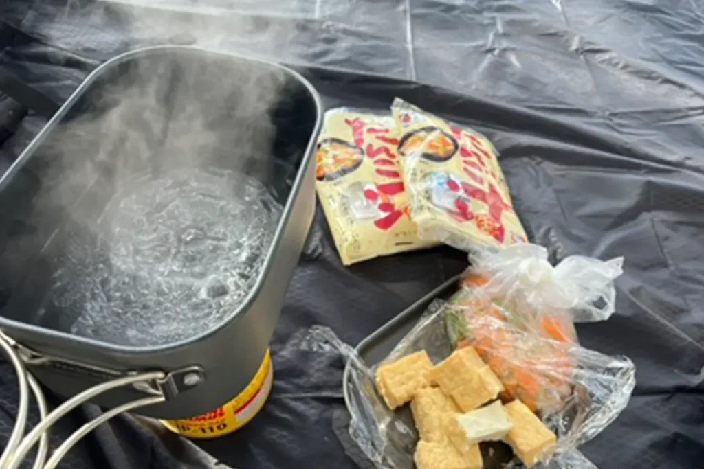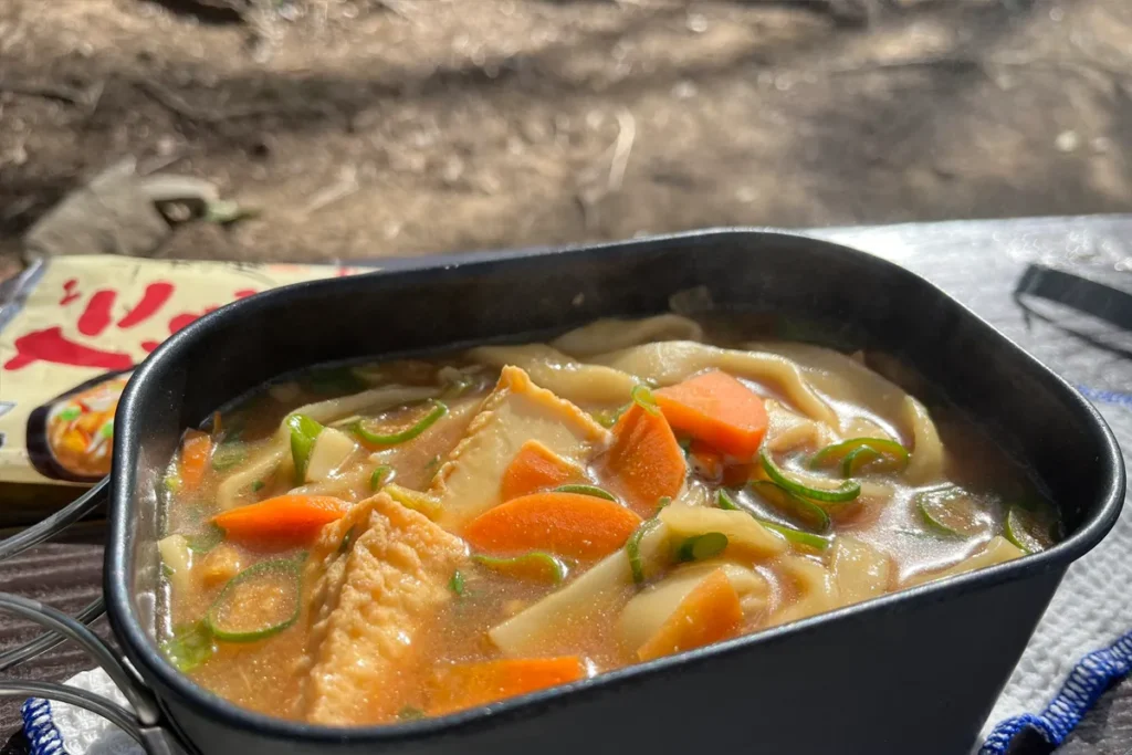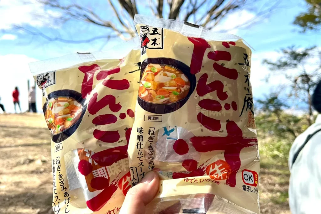 お楽しみの山頂メシ「五木食品 五木庵だんご汁」