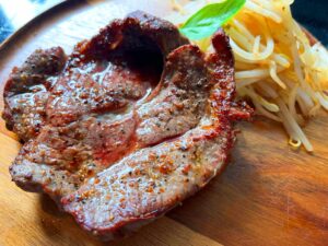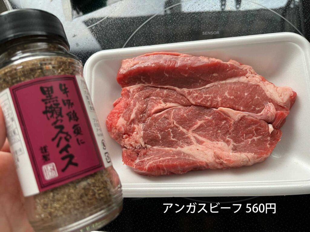 安いステーキ肉を買って、黒瀬のスパイスをたっぷりかけて焼いてみました!